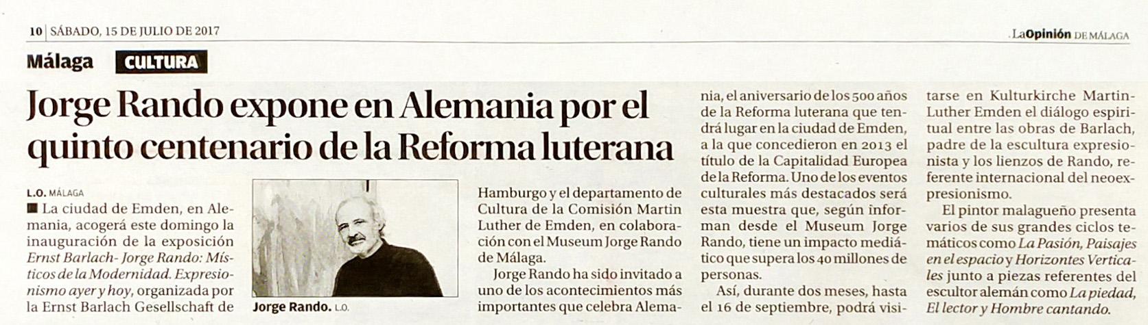 La opinión - Jorge Rando expone en Alemania por el quinto centenario de la Reforma Luterana