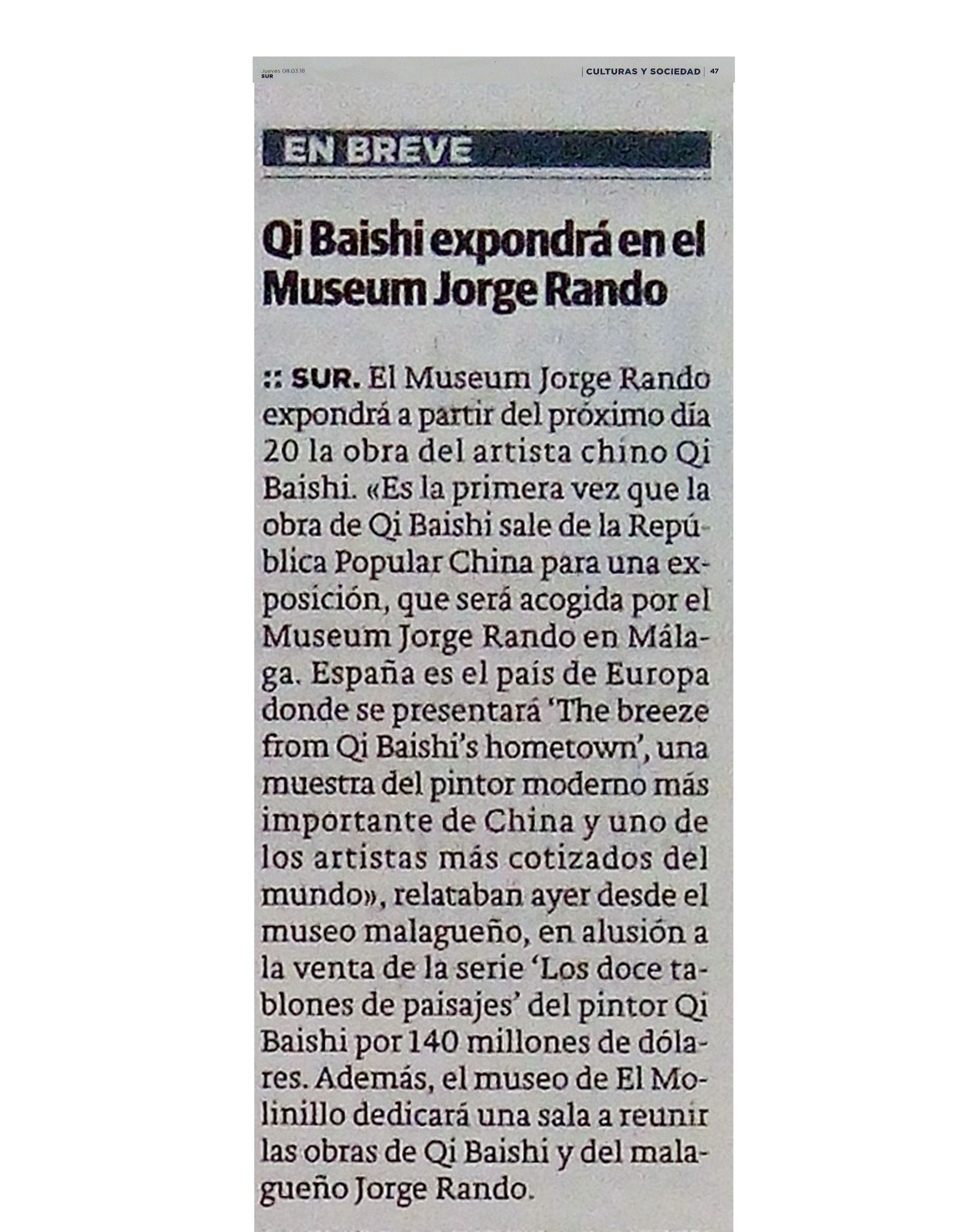 Diario Sur - Qi Baishi expondrá en el Museum Jorge Rando