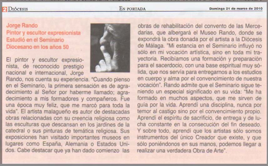 Jorge Rando pintor y escultor expresionista Estudió en el Seminario Diocesano en los años 50