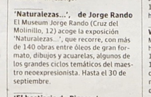 Los usuarios que accedan a esta sección de la web están autorizados para visualizar los contenidos de la misma (textos y elementos gráficos), reproducirlos y comunicarlos públicamente, siempre y cuando la finalidad sea la de informar sobre las actividades de la Fundación-Museum Jorge Rando en prensa y medios de comunicación.