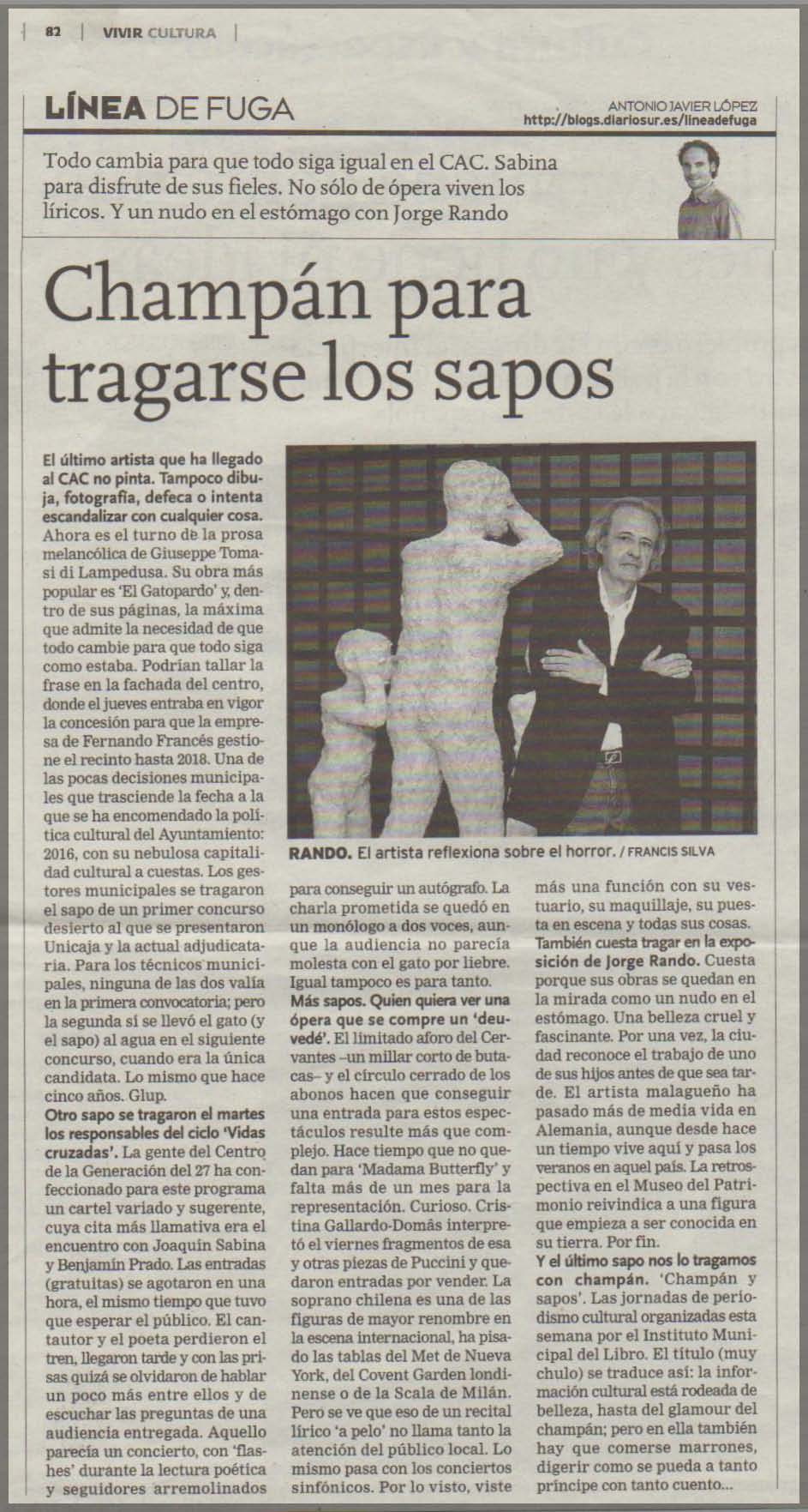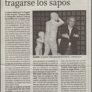 El último artista que ha llegado al CAC no pinta. Tampoco dibuja, fotografía, defeca o intenta escandalizar con cualquier cosa. Ahora es el curso de la prosa melancólica de Giuseppe Tomasi di Lampedusa. su obra más popular es "El Gatopardo" y, dentro de sus páginas, la máxima que admite la necesidad de que todo cambie para que todo siga como estaba