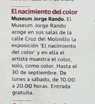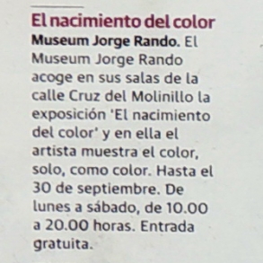 En cumplimiento con lo establecido en la Ley Orgánica 15/1999, de 13 de diciembre, de Protección de Datos de Carácter Personal, le comunicamos que los datos facilitados por usted pasarán a formar parte de una base de datos creada por la Fundación Jorge Rando con la finalidad exclusiva de poder dirigir a su atención envíos de información sobre las actividades organizadas por la Fundación. Usted tendrá derecho, en cualquier momento, de acceso, rectificación, cancelación u oposición respecto al tratamiento de sus datos. En ese caso, puede mandar una comunicación a info@museojorgerando.org o por correo postal adjuntando copia de identificación válida a: Fundación Jorge Rando, C/ Cruz del Molinillo, 12. Málaga, 29003. Legislación aplicable y jurisdicción competente Las presentes advertencias legales se rigen por la legislación española. Todos los conflictos que pudieran derivarse de su interpretación, aplicación y cumplimiento, se someterán a los Juzgados y Tribunales de Madrid (España), renunciando expresamente las partes a cualquier otro fuero que pudiera corresponderles.