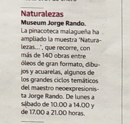 En cumplimiento con lo establecido en la Ley Orgánica 15/1999, de 13 de diciembre, de Protección de Datos de Carácter Personal, le comunicamos que los datos facilitados por usted pasarán a formar parte de una base de datos creada por la Fundación Jorge Rando con la finalidad exclusiva de poder dirigir a su atención envíos de información sobre las actividades organizadas por la Fundación. Usted tendrá derecho, en cualquier momento, de acceso, rectificación, cancelación u oposición respecto al tratamiento de sus datos. En ese caso, puede mandar una comunicación a info@museojorgerando.org o por correo postal adjuntando copia de identificación válida a: Fundación Jorge Rando, C/ Cruz del Molinillo, 12. Málaga, 29003. Legislación aplicable y jurisdicción competente Las presentes advertencias legales se rigen por la legislación española. Todos los conflictos que pudieran derivarse de su interpretación, aplicación y cumplimiento, se someterán a los Juzgados y Tribunales de Madrid (España), renunciando expresamente las partes a cualquier otro fuero que pudiera corresponderles.