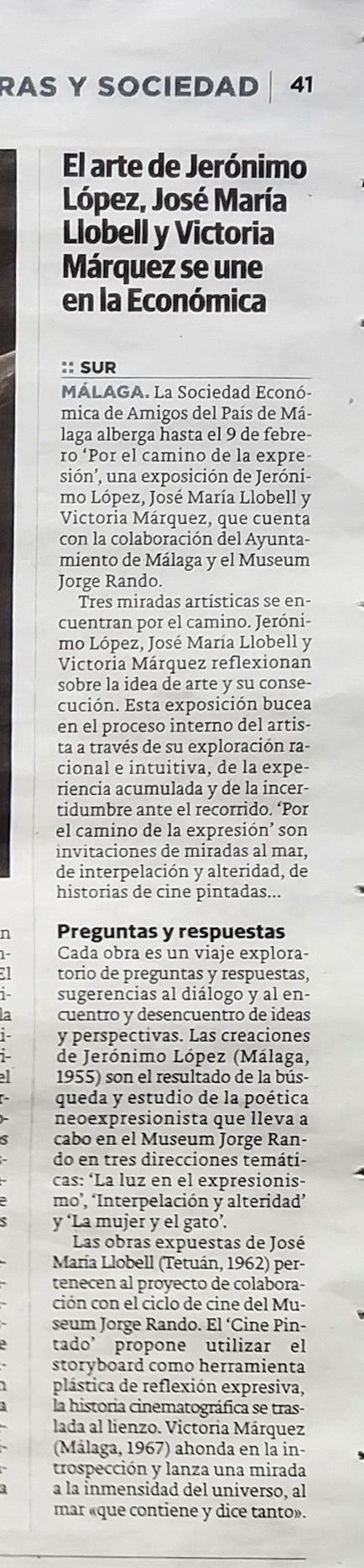 Diario Sur - El arte de Jerónimo López, José María Llobell y Victoria Márquez se une en la Económica