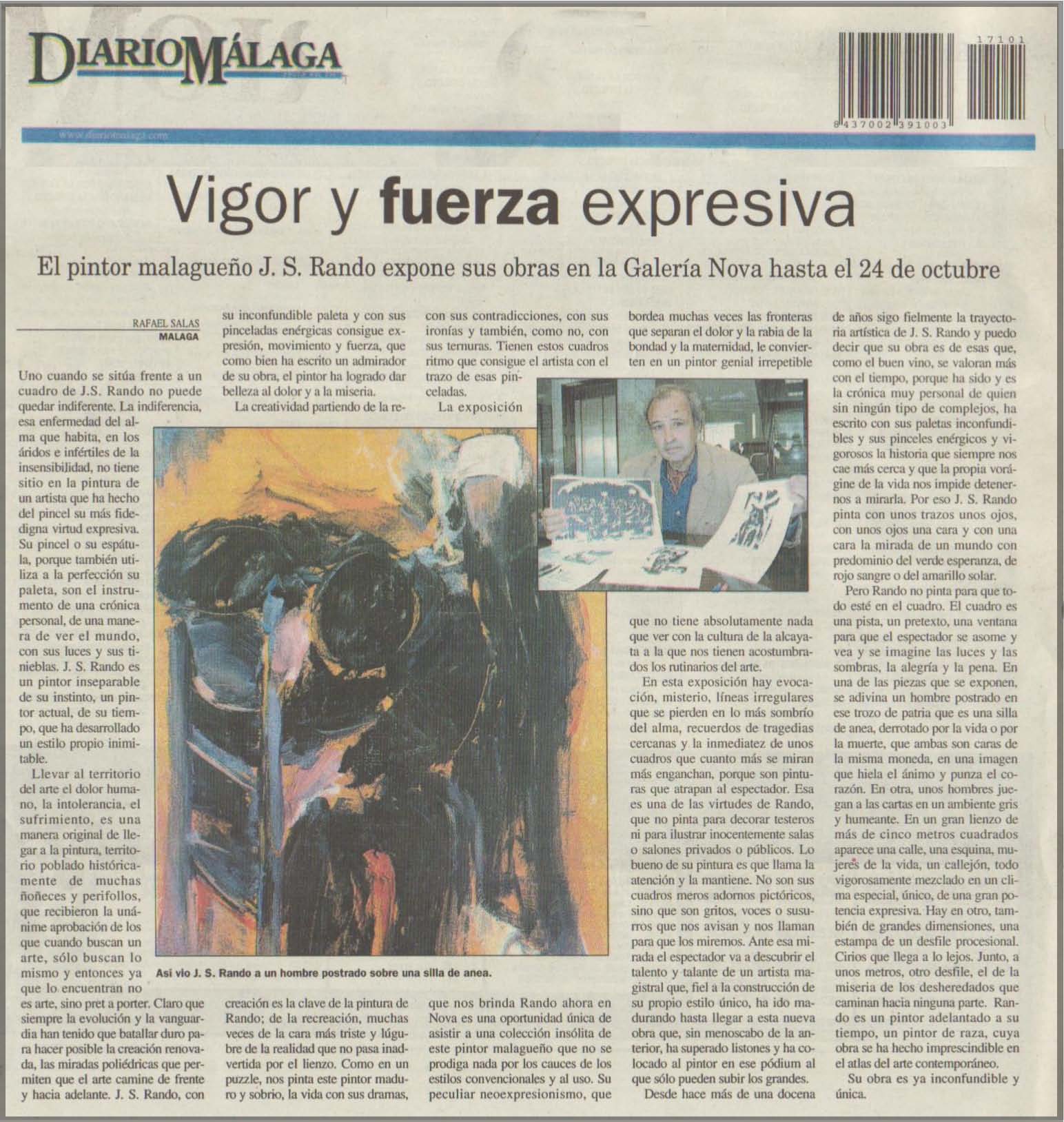 Uno cuando se situa frente a un cuadro de J.S Rando no puede quedar indiferente. La indiferencia, esa enfermedad del alma que habita, en los áridos e infértiles de la insensibilidad, no tiene sitio en la pintura de un artista que ha hecho de un pincel su más fidedigna virtud expresiva.