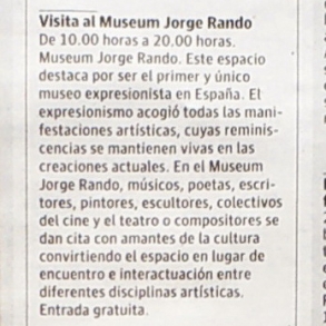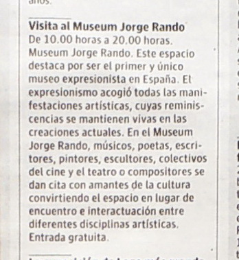 El uso de la información contenida en esta sección está destinado a periodistas y profesionales de los medios de comunicación para su difusión en relación con la actividad de la Fundación-Museum Jorge Rando. Los usuarios que accedan a esta sección de la web están autorizados para visualizar los contenidos de la misma (textos y elementos gráficos), reproducirlos y comunicarlos públicamente, siempre y cuando la finalidad sea la de informar sobre las actividades de la Fundación-Museum Jorge Rando en prensa y medios de comunicación. La Fundación-Museum Jorge Rando tiene licencia de uso para reproducir y comunicar públicamente los elementos gráficos y audiovisuales que aparecen en esta página web.
