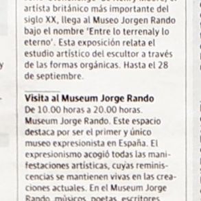 Los usuarios que accedan a esta sección de la web están autorizados para visualizar los contenidos de la misma (textos y elementos gráficos), reproducirlos y comunicarlos públicamente, siempre y cuando la finalidad sea la de informar sobre las actividades de la Fundación-Museum Jorge Rando en prensa y medios de comunicación.