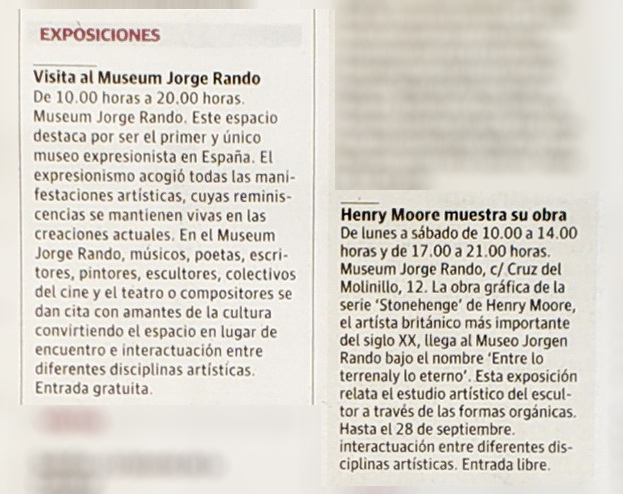 Los usuarios que accedan a esta sección de la web están autorizados para visualizar los contenidos de la misma (textos y elementos gráficos), reproducirlos y comunicarlos públicamente, siempre y cuando la finalidad sea la de informar sobre las actividades de la Fundación-Museum Jorge Rando en prensa y medios de comunicación.