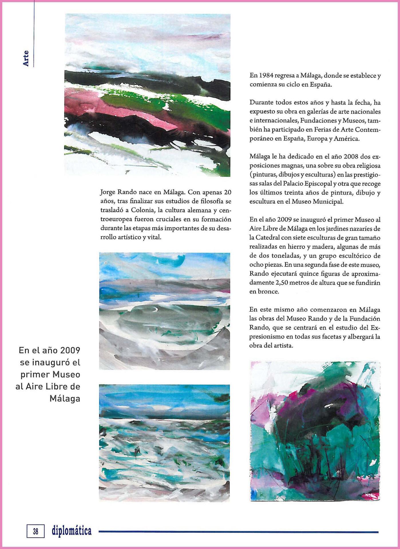 Jorge Rando nace en Málaga. Con apenas 20 años, tras finalizar sus estudios de filosofía se trasladó a Colonia, la cultura alemana y centroeuropea fueron cruciales en su formación durante las estapas más importantes de su desarrollo artístico y vital.
