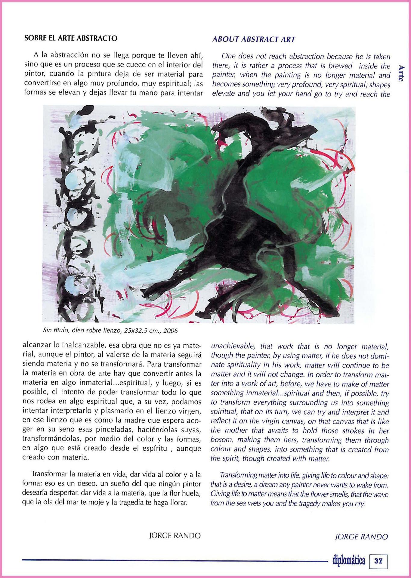 A la abstracción no se llega porque te lleven ahí, sino que es un proceso que se cuece en el interior del pintor, cuando la pintura deja de ser material para convertirse en algo muy profundo, muy espiritual; las formas se elevan y dejas llevar tu mano para intentar...