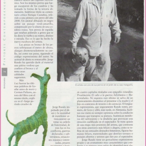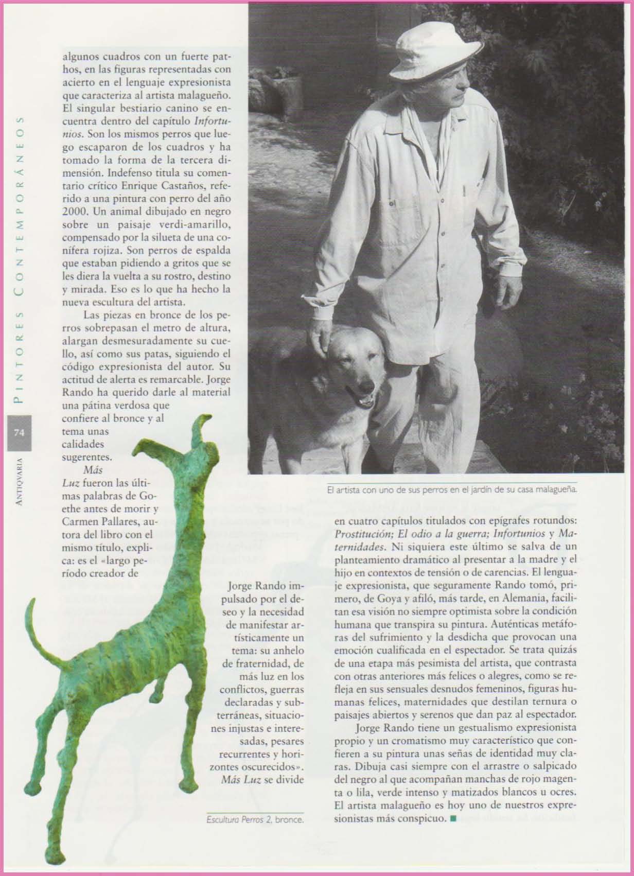 ...algunos cuadros con un fuerte pat-hos, en las figuras representadas con acierto en el lenguaje expresionista que caracteriza al artista malagueño. El singular bestiario canino se encuentra dentro del capítulo Infortunios. Son los mismos perros que luego escaparon de los cuadros y ha tomado la forma de la tercera dimensión. Indefenso titula su comentario crítico Enrique Castaños, referido a una pintura con perro del año 2000.