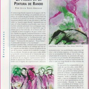 El artista Jorge Rando expone en el espacio del Palacio Arzobispal de Málaga una profunda serie pictórica, en cuadros de gran formato, bajo el título de La Pasión en la pintura de Rando. La muestra permanecerá abierta todo el mes de marzo y abril de 2008. La "pasión según Rando” representa por un lado el Cristo histórico crucificado y por otro el hombre sufriente universal. Con un lenguaje expresionista, el pintor se suma a la importante saga de artistas que se han atrevido, en la historia del arte, a abordar el tema evangélico de gran calado ascético. Rando ha seguido fundamentalmente el relato de san Lucas a la hora de tomar las escenas que van desde "La última Cena" a "La Resurrección", pasando por "Getsemaní", "La traición de ludas”, "Ultrajes", "Coronación de espinas", "Ecce Homo", "Camino del Calvario" o "La crucifixión".