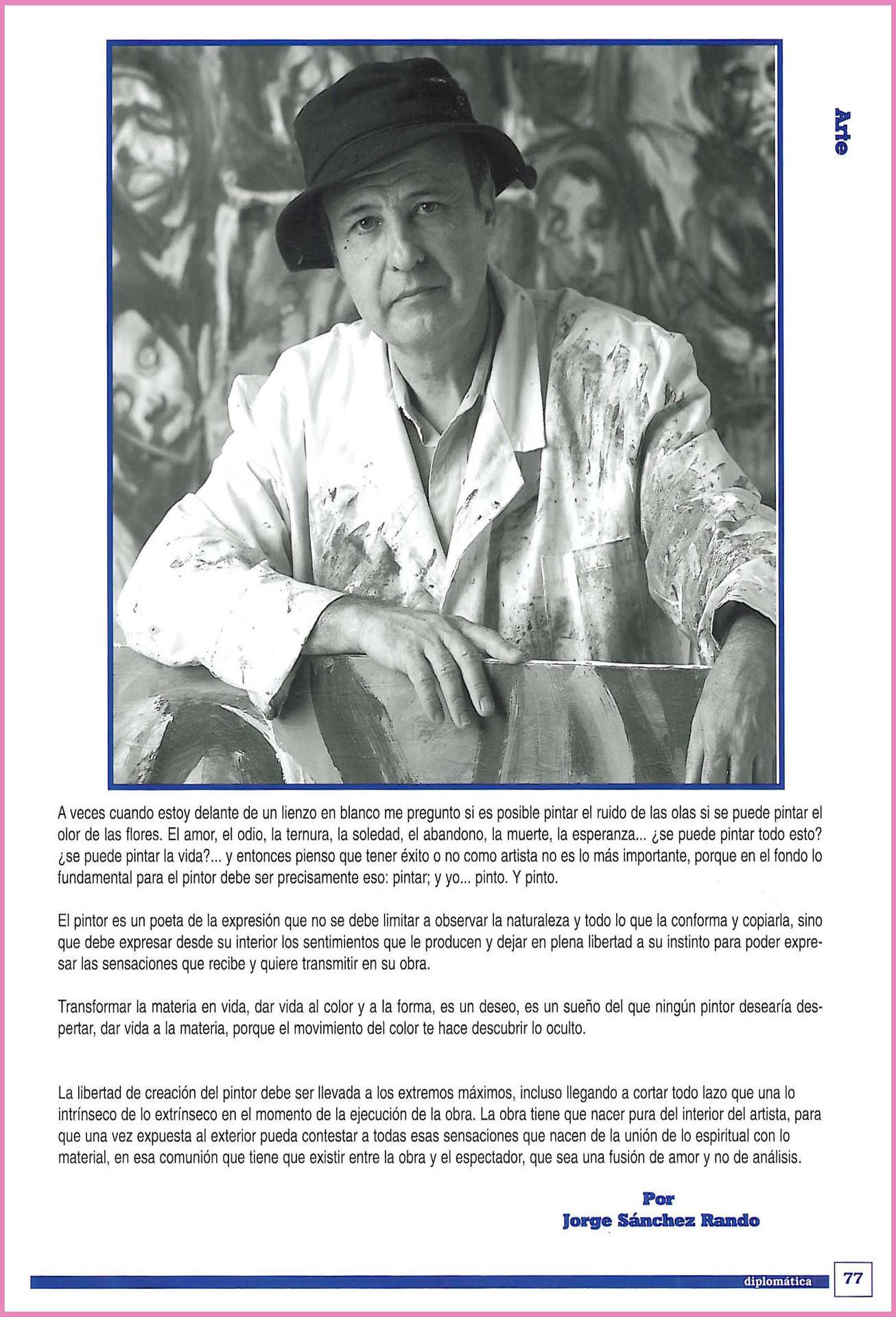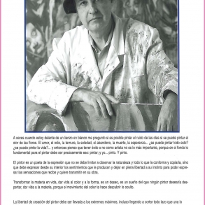 A veces cuando estoy delante de un lienzo en blanco me pregunto si es posible pintar el ruido de las olas si se puede pintar el olor de las flores. El amor, el odio, la ternura, la soledad, el abandono, la muerte, la esperanza... ¿se puede pintar todo esto? ¿se puede pintar la vida?... y entonces pienso que tener éxito o no como artista no es lo más importante, porque en el fondo lo fundamental para el pintor debe ser precisamente eso: pintar; y yo... pinto. Y pinto.