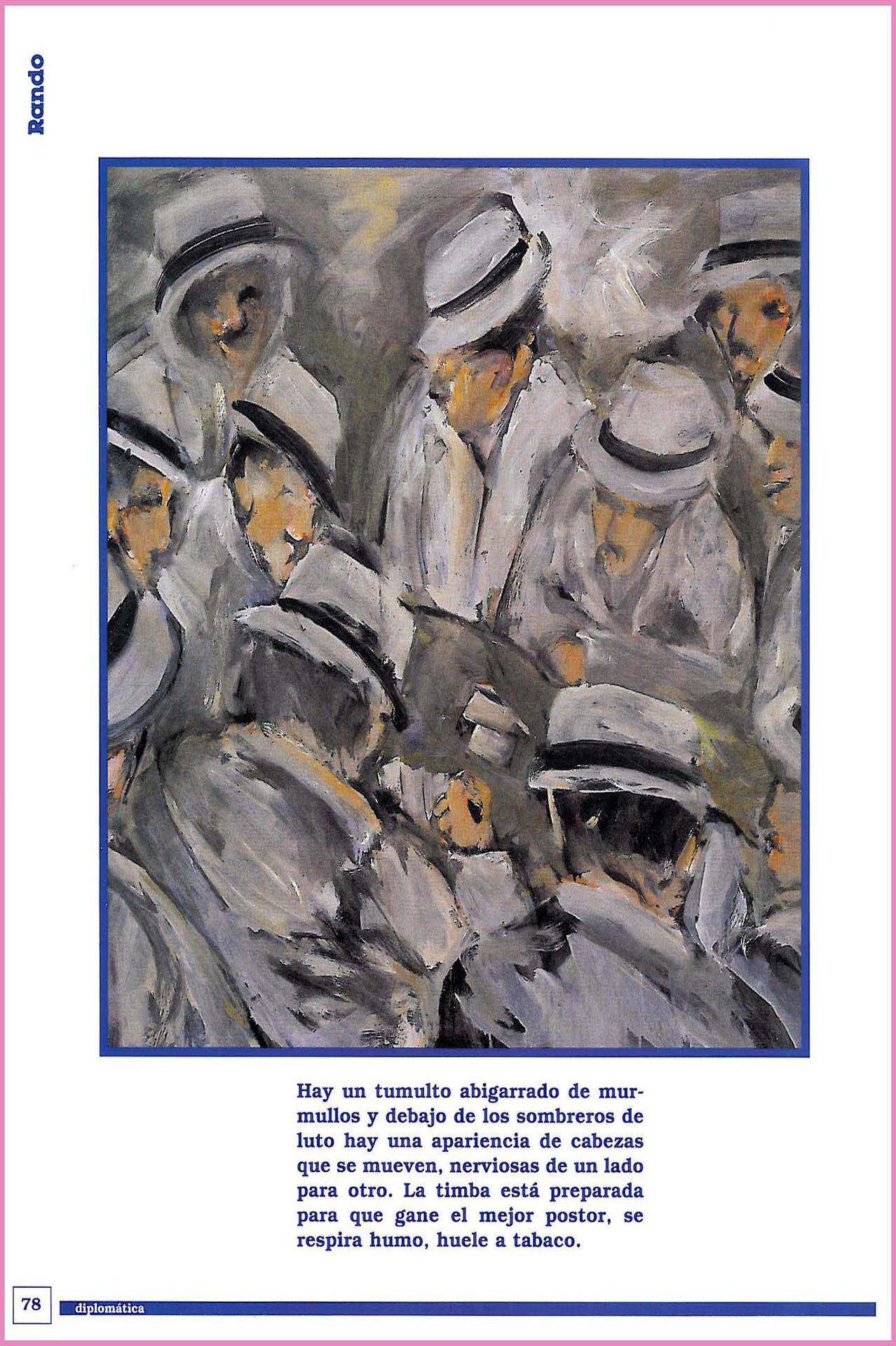 Hay un tumulto abigarrado de murmullos y debajo de los sombreros de luto hay una apariencia de cabezas que se mueven, nerviosas de un lado para otro. La timba está preparada para que gane el mejor postor, se...
