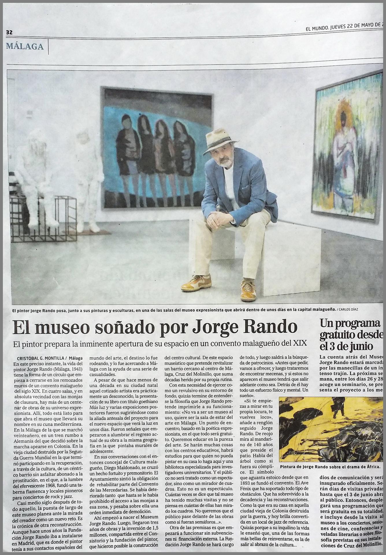 Los usuarios que accedan a esta sección de la web están autorizados para visualizar los contenidos de la misma (textos y elementos gráficos), reproducirlos y comunicarlos públicamente, siempre y cuando la finalidad sea la de informar sobre las actividades de la Fundación-Museum Jorge Rando en prensa y medios de comunicación.