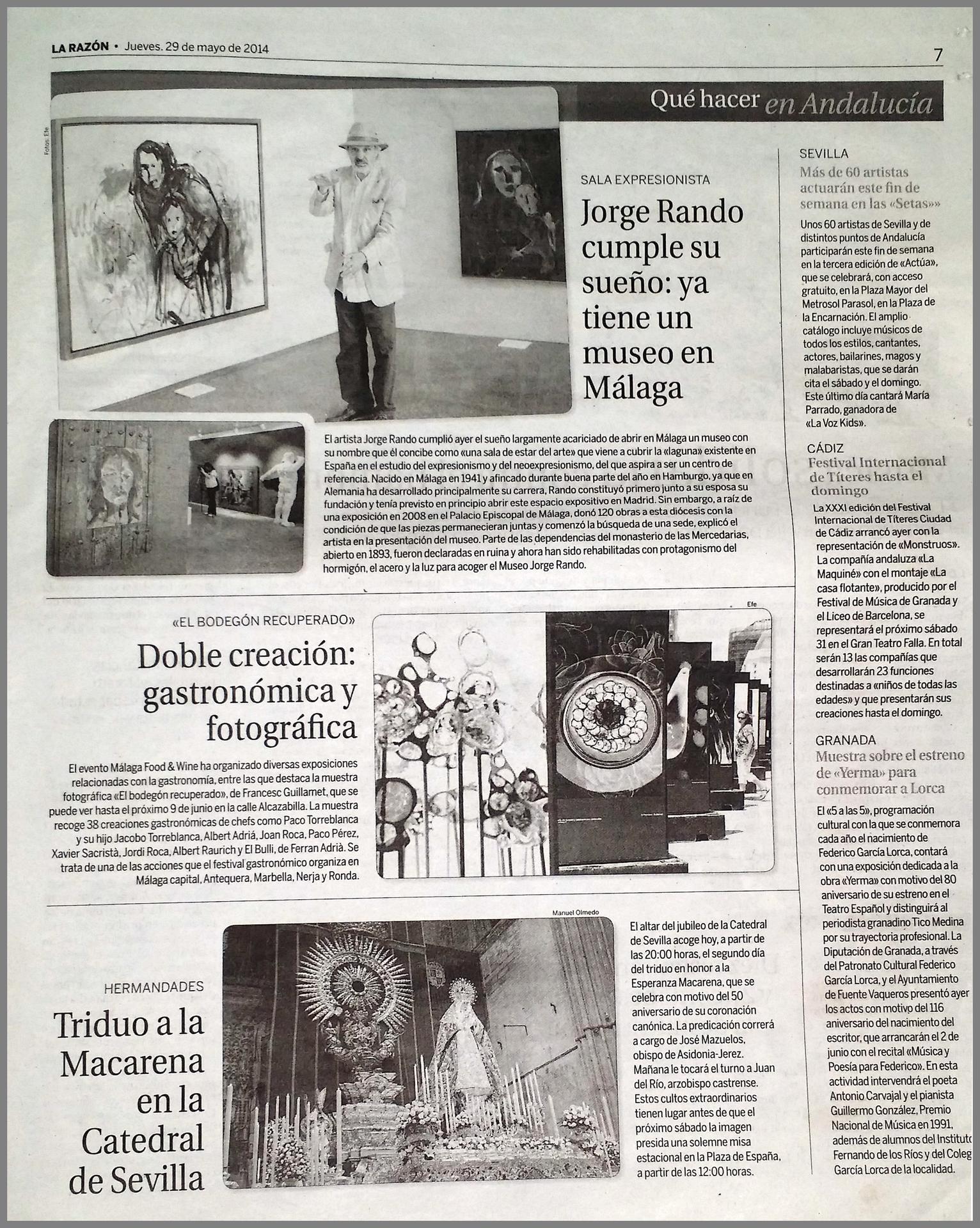 La Razón - Jorge Rando cumple su sueño: ya tiene un museo en Málaga