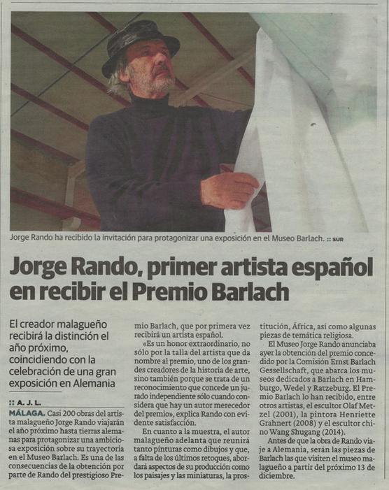 Diario Sur - Jorge Rando, primer artista español en recibir el Premio Barlach